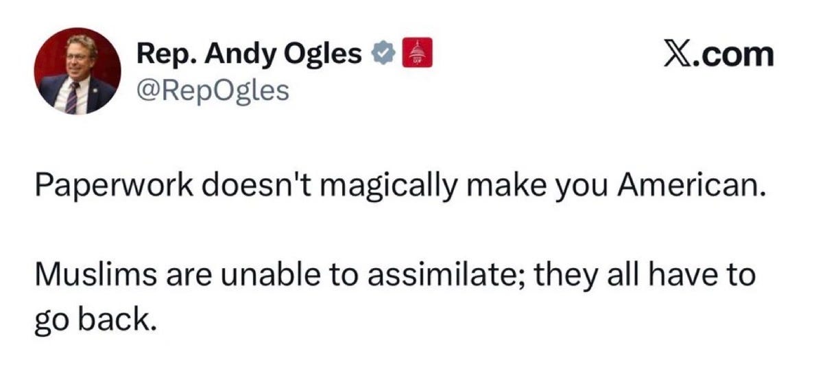 Tennessee Congressman Andy Ogles is the latest Republican politician to demand the removal of all Muslims from America.