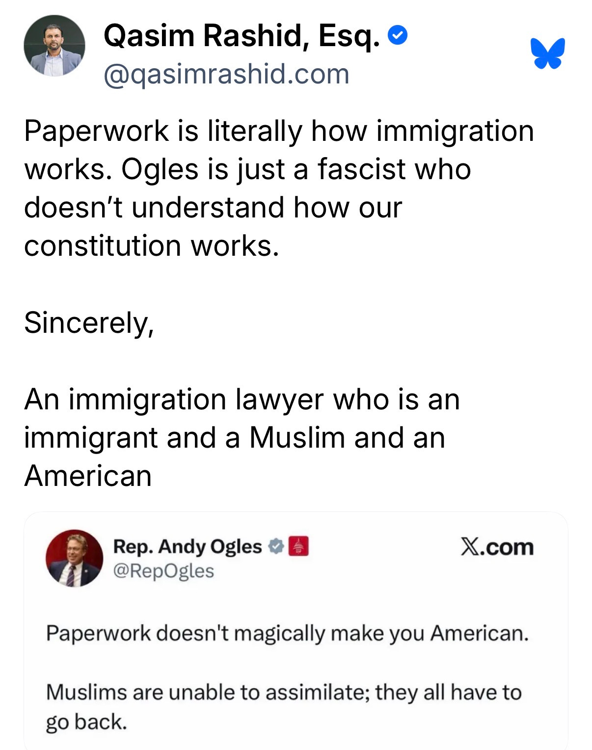 I responded to him on social media with a short and clear fact that he seems to have missed—paperwork literally is how you become an American citizen.